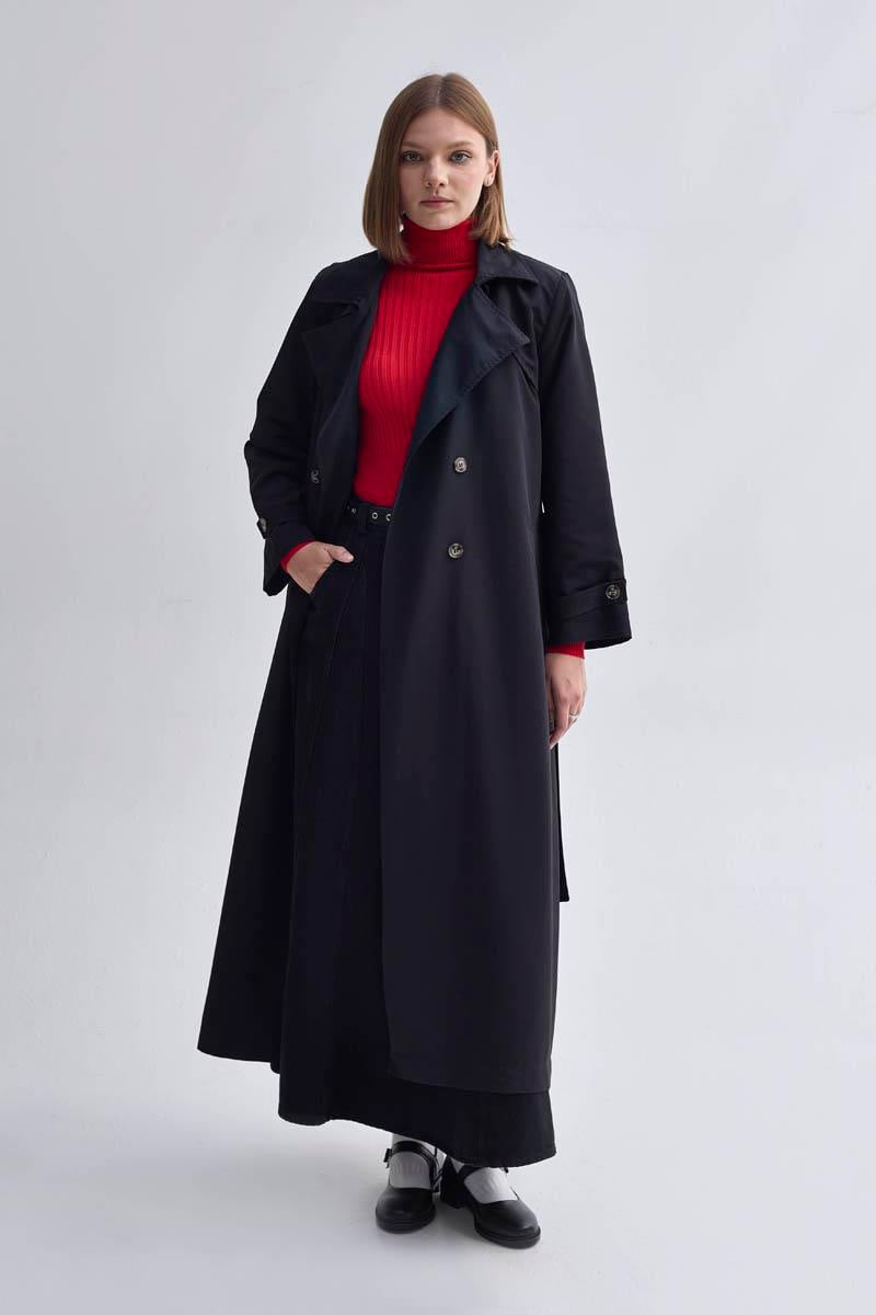 Kruvaze Klasik Trençkot Siyah, zamansız tasarımıyla her kombine uyum sağlayan şık bir dış giyim parçasıdır. Kruvaze yaka detayı, önden düğmeli formu ve uzun boyuyla klasik bir şıklık sunar. Günlük şehir stilinde veya özel günlerde rahatlıkla tercih edilebilir. Astarlı yapısı sayesinde konforlu kullanım sağlar.